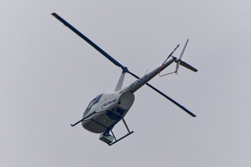Dziś w naszej okolicy pracował intensywnie śmigłowiec Robinson R44 Raven II. Trudno jednoznacznie sprecyzować cel misji, być może wykonywał inspekcję linii energetycznych lub skanowanie laserowe terenu. Niestety nie widać go było w aplikacjach typu Flightradar, czy Safesky chętnie wykorzystywanych przez użytkowników przestrzeni powietrznej operujących na małych wysokościach, np. droniarzy. Włączanie transpondera obowiązkowe nie jest na tej wysokości, ale czasem ułatwia innym życie.